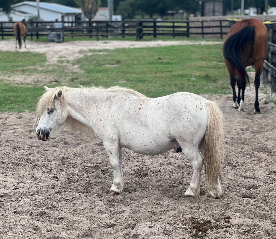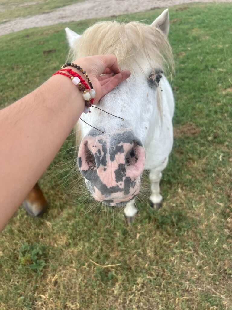En una tranquila finca rodeada de árboles centenarios y cielo abierto, habita un ser especial que ha tocado el alma de quienes se han atrevido a abrir su corazón. Su nombre es Pecas, un pony blanco con pecas suaves como pétalos de manzanilla en primavera. A simple vista, podría parecer un caballo más en el paisaje de Ocala, Florida… pero quienes han compartido un instante con él saben que hay magia en su presencia.